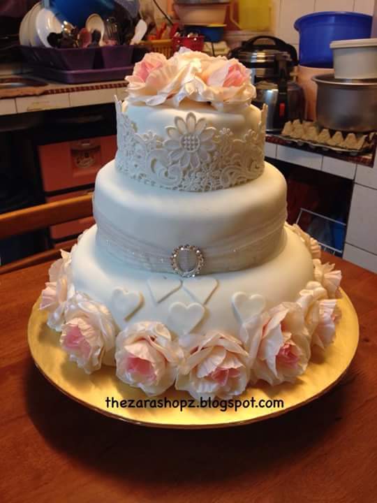 | kek perkahwinan full fondant hantar di Dewan Smk Merpati, batu 7. |
